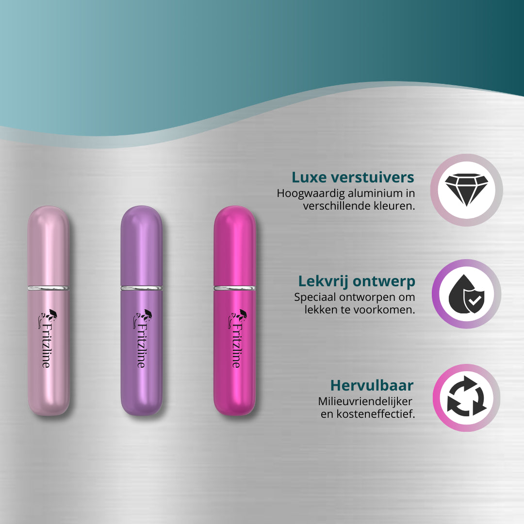 Set van 3 stijlvolle verstuivers – navulbaar, lekvrij en perfect voor onderweg!