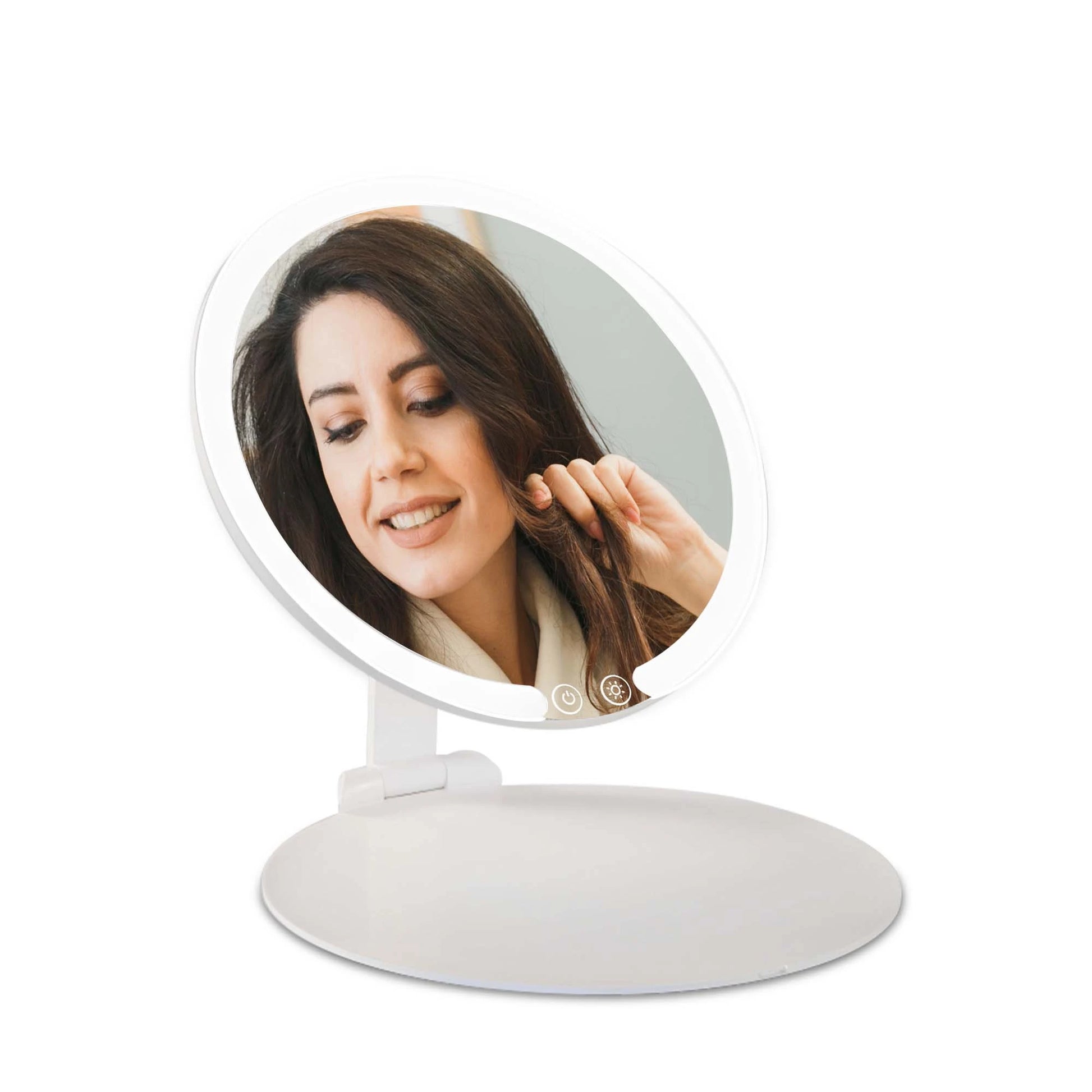 - Verstelbare Hoek: Of je nu je make-up aanbrengt of je huid verzorgt, de spiegel kan eenvoudig in verschillende hoeken worden gezet voor de ideale kijkhoek.
